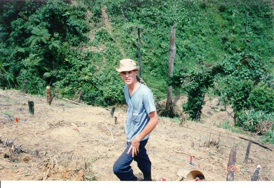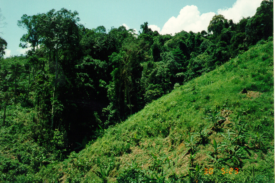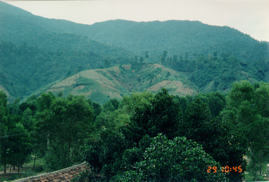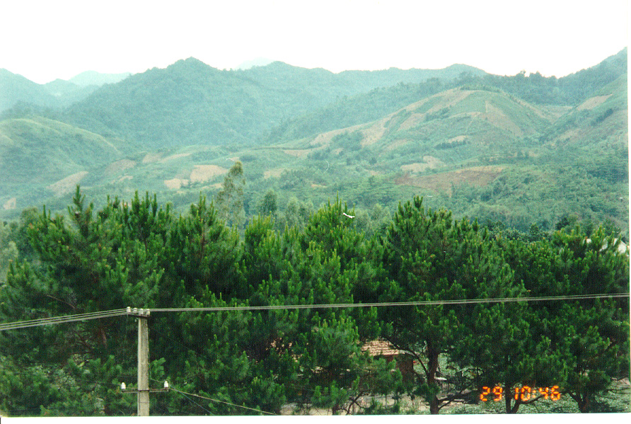 WE STARTED OFF IN A LOUI, A SMALL TOWN IN THE A SHAU. STANDING FROM THE SO-CALLED HOTEL, I TOOK A FEW PICTURES OF THE MOUNTAINS. YOU CAN SEE A GOOD EXAMPLE OF THE SLASH AND BURN FARMING THEY DO ON THE MOUNTAIN SIDES.