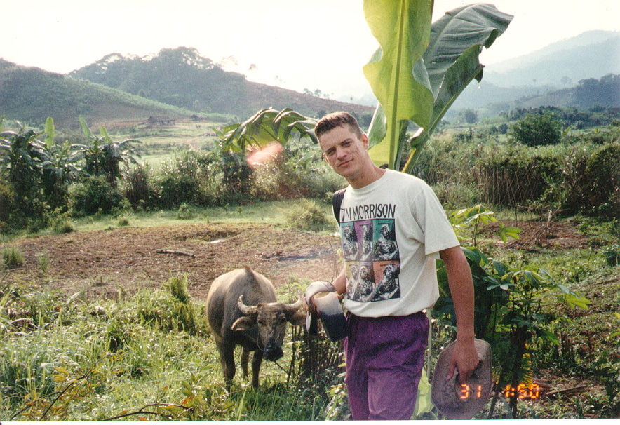 WAY I STOP TO POSE WITH A VIETNAMESE TRACTOR (WATER BUFFALO).