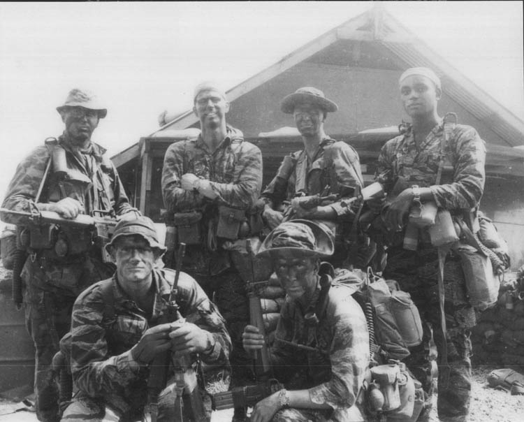 The picture was taken about Jun/Jul 1969 from the LZ at An Hoa. Our outfit is 1st Force Recon. Our call sign may have been "Minkcoat" or "Petrify." We changed call signs frequently. I was the patrol leader (SSgt Griffith) -- standing in the back in the picture, far left.