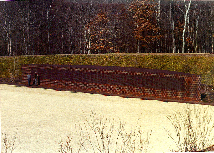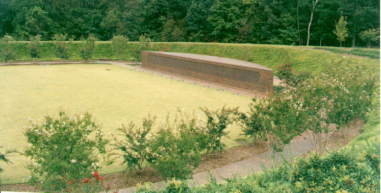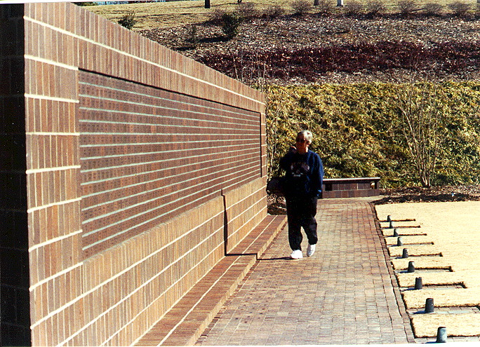 These pictures were taken in January of 1995. They show the memorial during the winter months of the year. Although the grass is in it's winter colors, the contrast of the red brick of the memorial and the "sleeping" lawn compliment each other very well.
