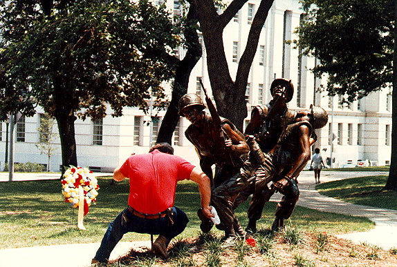 This statue is located in Raleigh, North Carolina. It stands in front of the old State Capitol Building. It was commissioned by private donations from veterans groups, and other donors, around the state.