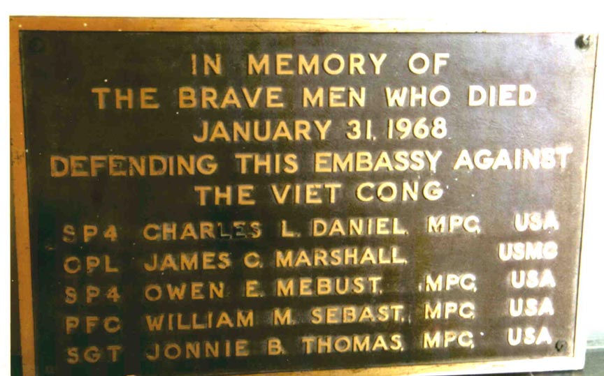 A plaque, commemorating the American Embassy Guards killed in the 1968 TET offensive, appeared in a Vietnamese War Museum in Saigon, apparently now the property of the Vietnamese through the "spoils of war" concept.