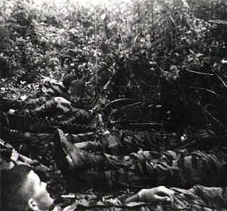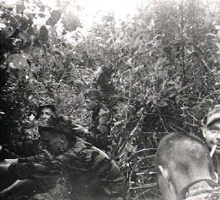 "This photograph was taken while on ambush. In this case, it was more of a rest than a threat to the enemy. We were bunched too close together, and guys were falling asleep."