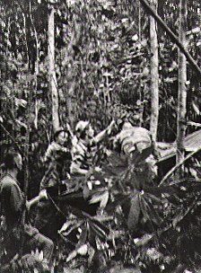 "A mountain stream below the darkness of the jungle canopy. One of the few occasions to wash."