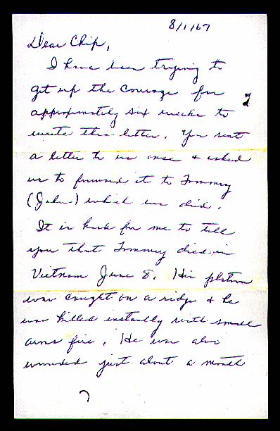 One evening, a couple of days later, I was sitting in my room writing a letter. Some of the guys asked if I wanted to go to a whore house, but I was content to stay and enjoy the comfort and security. Later, someone came to my room and asked if there was a "Chip" here. I said, "Yes, that's me."