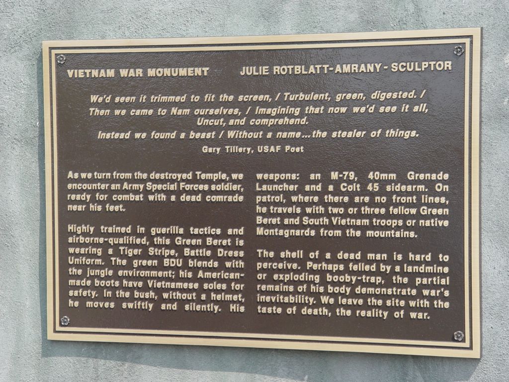 Munster, IN Veterans Memorial Park Pictures -- Plaque describing the Vietnam Memorial Portion