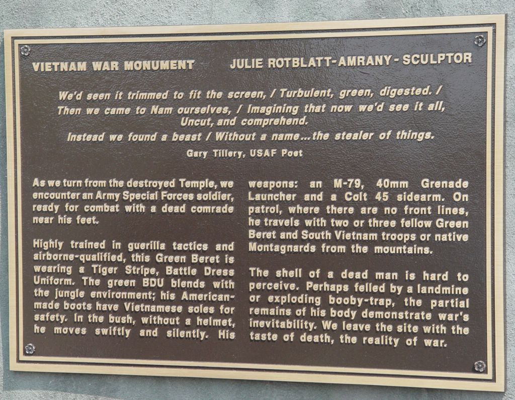 Munster, IN Veterans Memorial Park Pictures -- Plaque describing the Vietnam Memorial Portion