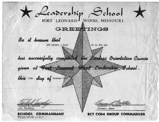 After basic training, I went back to just being a trainee. LOC or prior service didn't mean squat to the people at my next training assignment. That was fine by me. It took a lot of pressure off. I did OK in infantry training, and I was promoted to PFC (E-3) at graduation. BFD? I thought so. As it turned out later when I got to Vietnam, everybody was promoted to E-3 when they landed in-country; and time in grade as an E-3 didn't mean squat, either.
