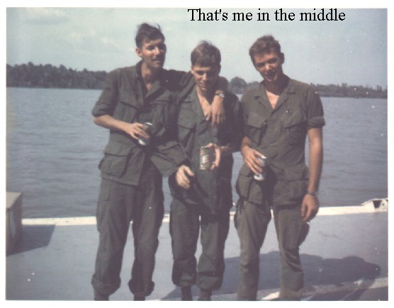 I think that the guy on the left in this picture is Rene Pelletier (pronounced Rainy) without his glasses on. It's hard to tell after 30 years. We were drafted together, went through Leaders Orientation Course at Fort Leonard Wood together, then were sent to different basic training companies, and were together again for infantry training at Fort Polk. We went to San Francisco together a day early to see the sights before we reported to Oakland Army Terminal for transportation to Vietnam. We played cards together on the plane on the way over there. We were assigned to five days of KP in Saigon together on our second day in Vietnam. We went through In-Country Training together at Bear Cat. We saw our first dead VC together on our way to Dong Tam by truck.